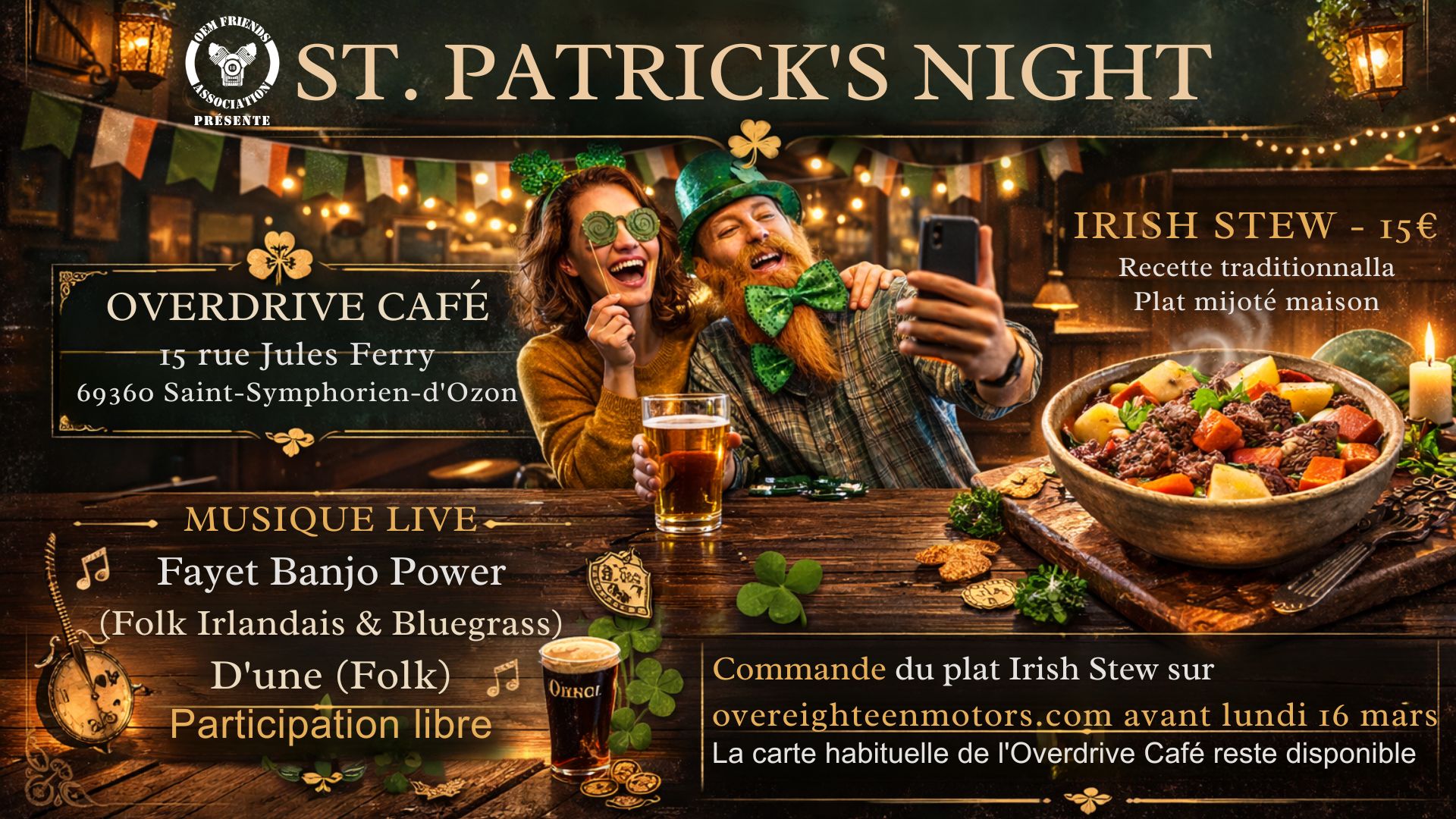 L’association OEM FRIENDS organise à l’Overdrive Café la Saint-Patrick’s Night :